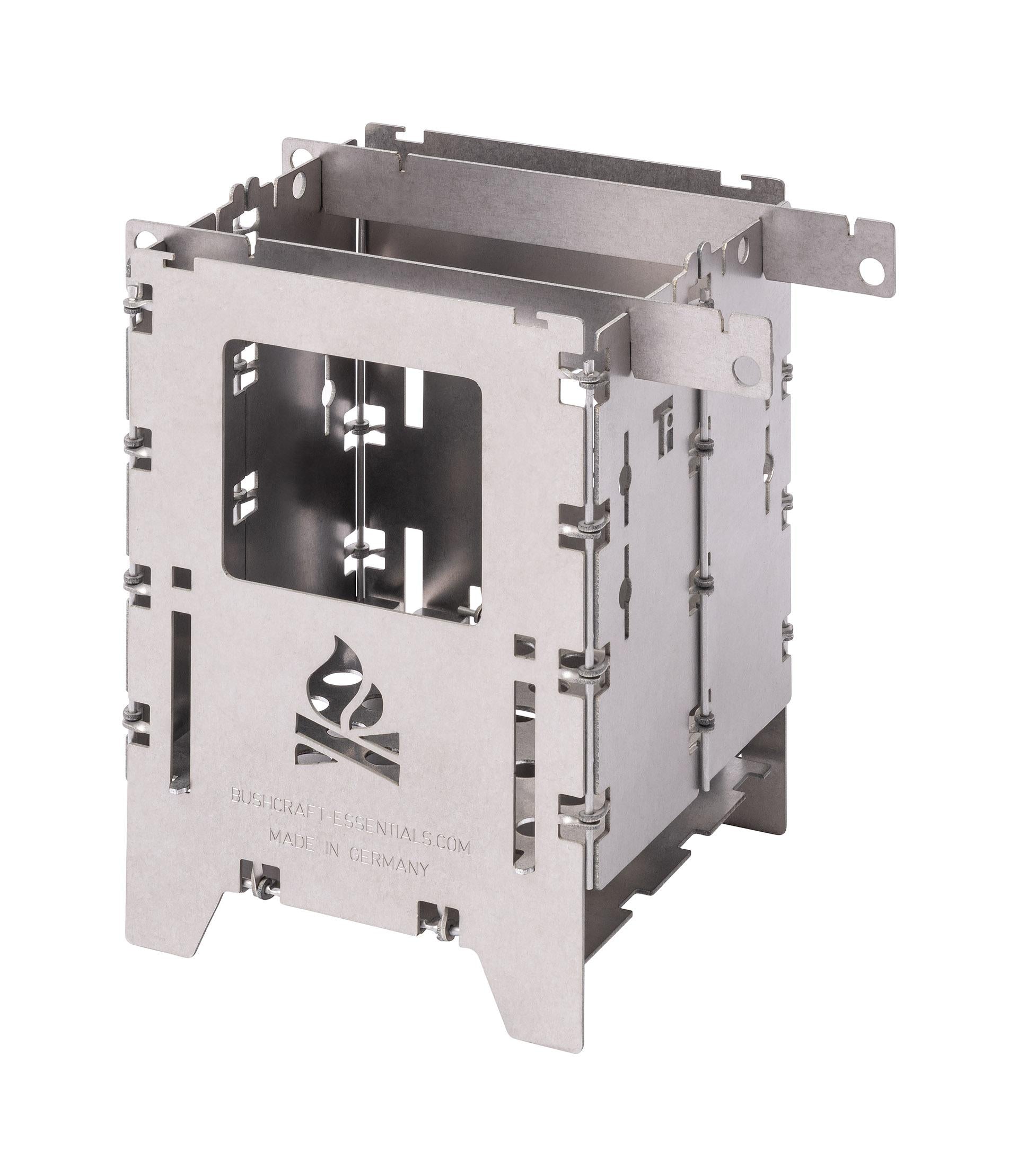 - Like all of Bushcraft Essentials’ stoves, the Bushbox LF Titanium is made in Germany and has multi-fuel capabilities (compatible with wood, Esbit, Trangia, etc.).