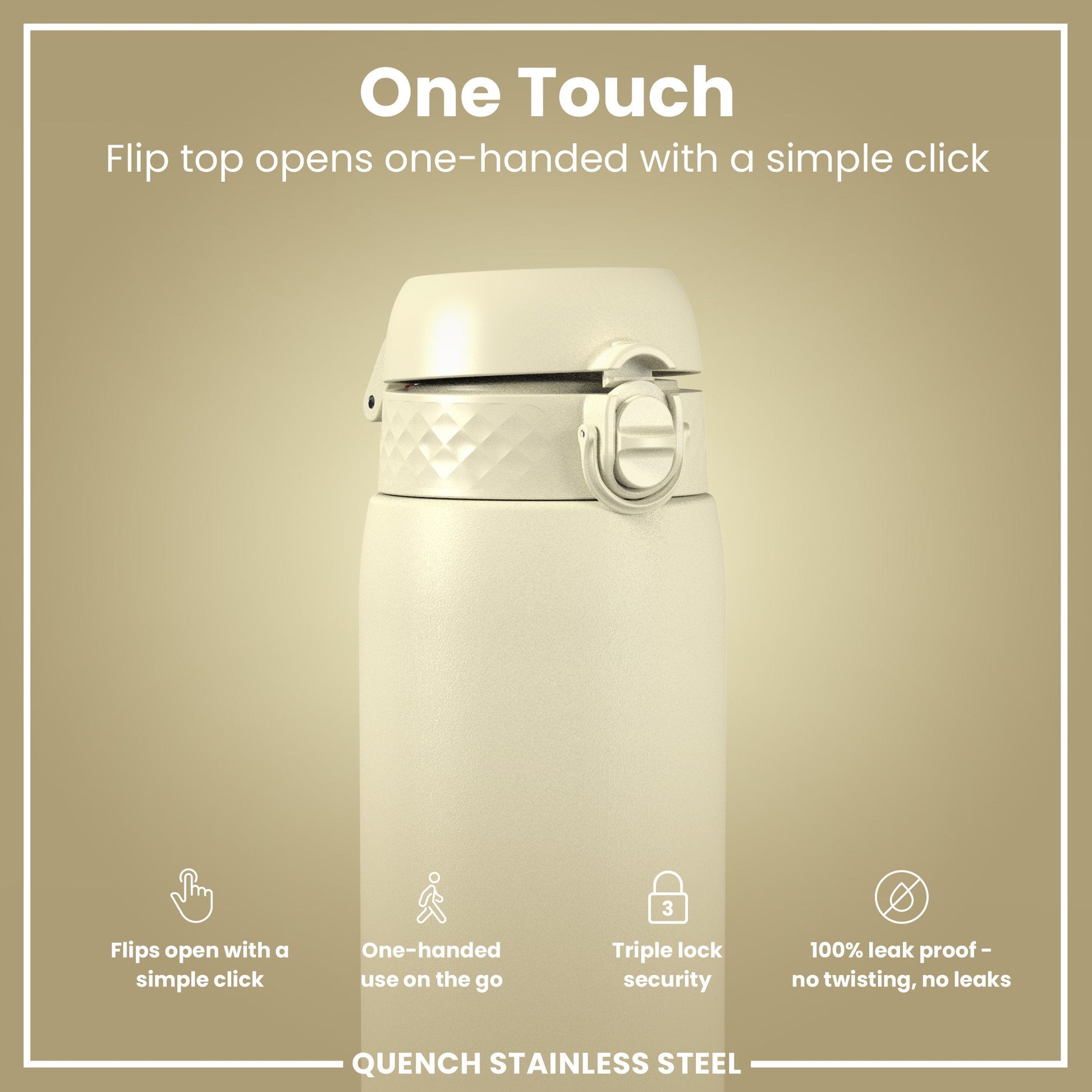 Leak Proof 1 Litre Water Bottle, Stainless Steel, Creamy White, 1L